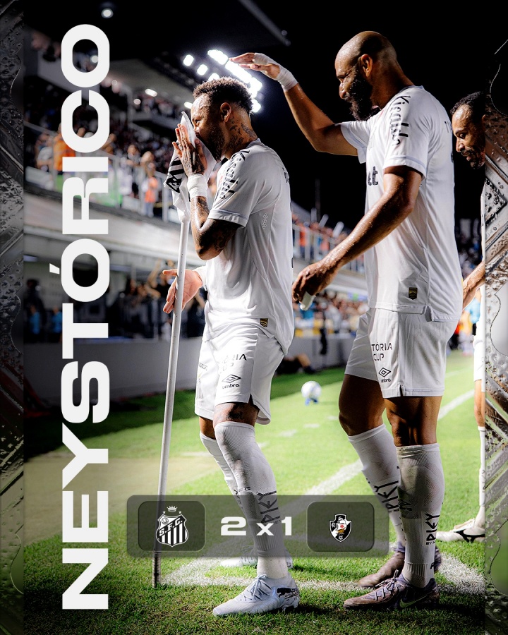 02月26日讯 巴甲第4轮,桑托斯主场2-1击败瓦斯科达伽马,内马尔梅开二度,率队取本赛季巴甲首胜,逃离降级区。比赛第25分钟,内马尔小角度推远角得手,随后做闭嘴手势+模仿维尼修斯在角旗杆旁跳舞庆祝;比赛第61分钟,内马尔挑射破门完成梅开二度,最终帮助桑托斯2-1取胜。...
