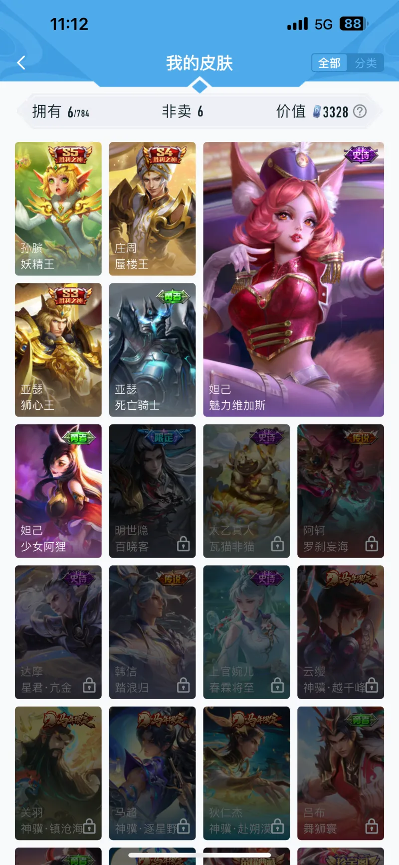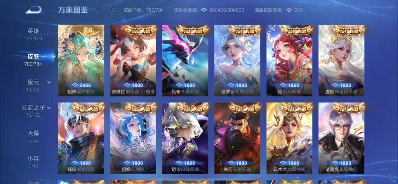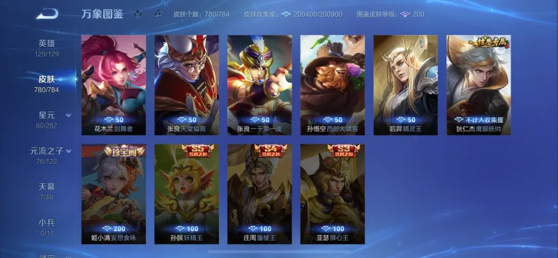 780皮,差1珍宝阁+3赛季皮。吃亏就吃亏在入坑太早了,那时候没有转区功能,我的老安卓号上有那三个赛季皮。不知道以后能不能出个同账号转移皮肤销号的功能呢?780皮,差1珍宝阁+3赛季皮。吃亏就吃亏在入坑太早了,那时候没有转区功能,我的老安卓号上有那三个赛季皮。[大哭]不知道以后能不能出个同...